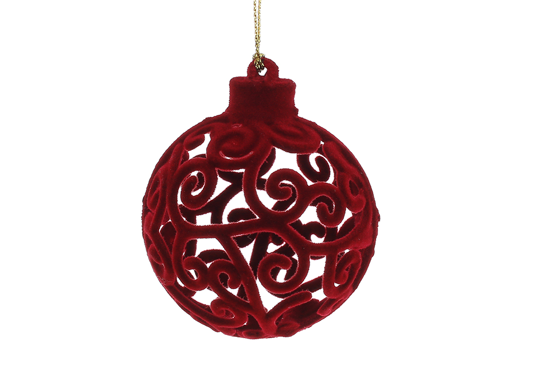 Пластикова ялинкова куля ажурна з флоковим напиленням 6см, колір - червоний