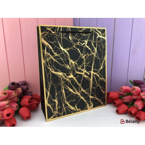 Подарочные пакеты "Gold marble" M черные