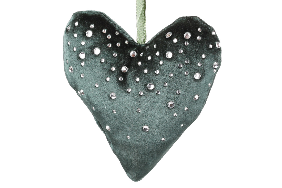 Підвісний оксамитовий декор зі стразами Серце, 13см, колір - класичний зелений