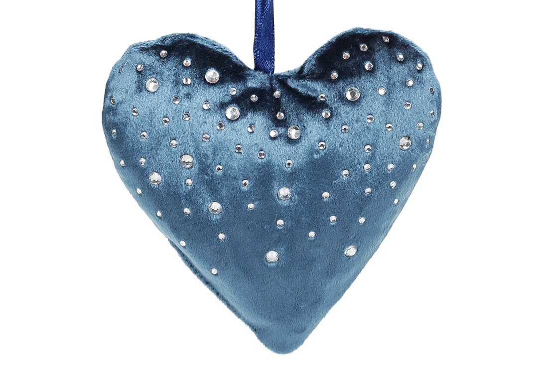 Підвісний оксамитовий декор зі стразами Серце, 13см, колір - нічний синій