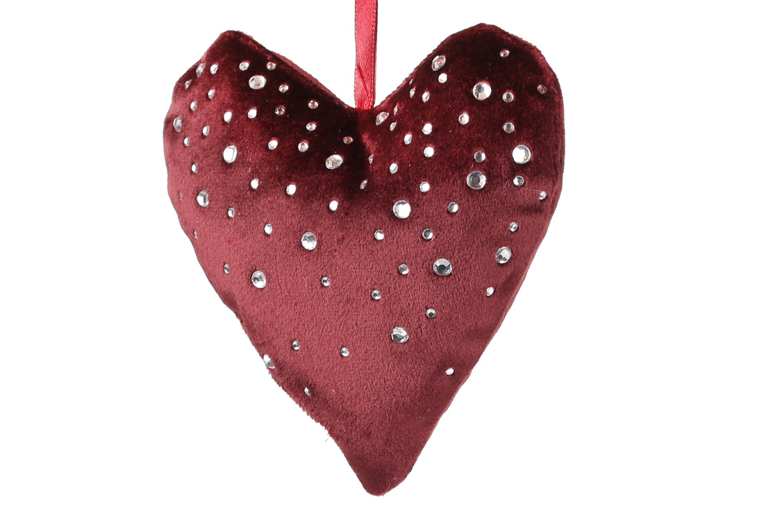 Підвісний оксамитовий декор зі стразами Серце, 13см, колір - винний
