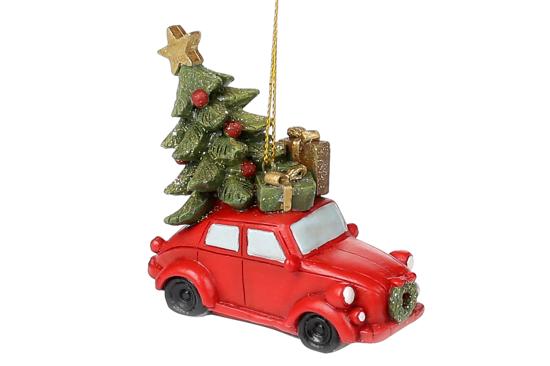 Підвісний декор Машинка з новорічною ялинкою, 7см, колір - червоний