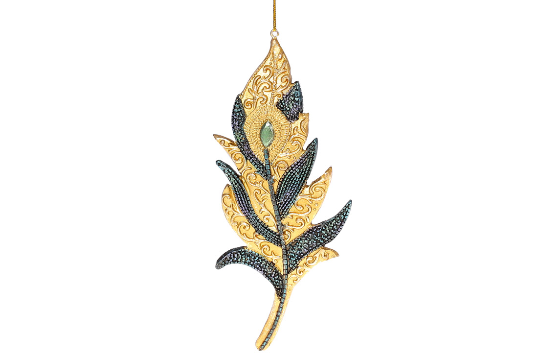 Підвісний декор Перо павича, 19см, колір - темно-синій із золотом