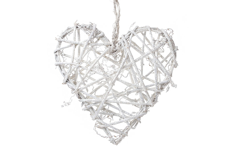 Підвісний декор Серце з раттану, білий з блискітками