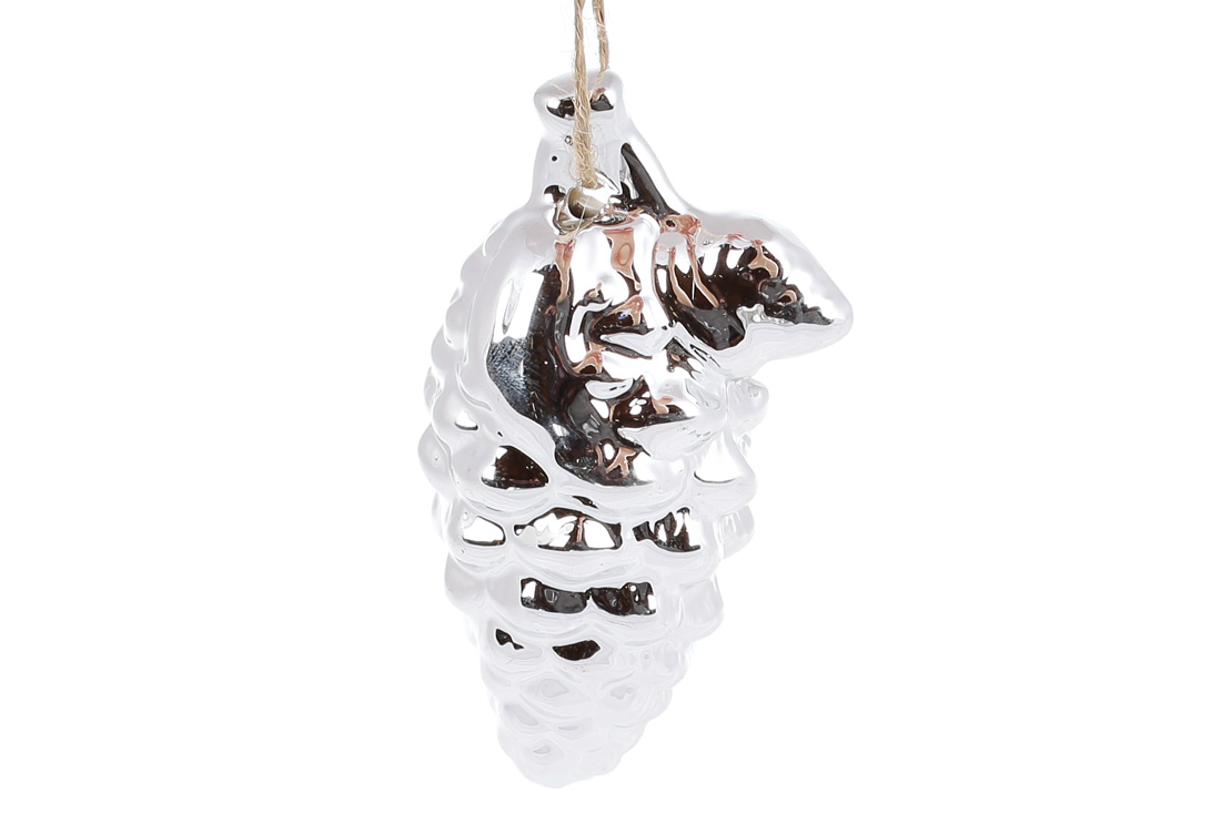 Підвісний порцеляновий декор Шишка, 9см, колір - срібний