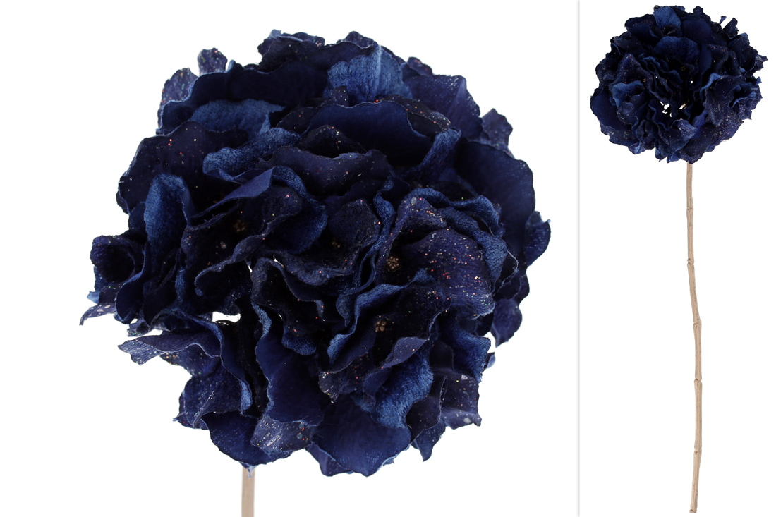 Преміальна оксамитова Гортензія з глітером на нозі 62 см, колір - королівський синій