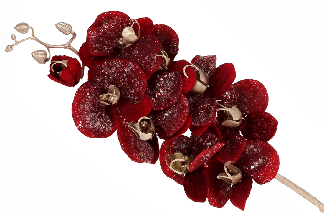 Преміальна оксамитова орхідея з гліттером на нозі 73см, колір - винний бордо