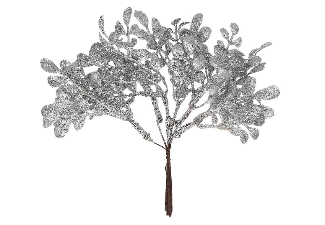Пучок листя в гліттері срібло, 19см