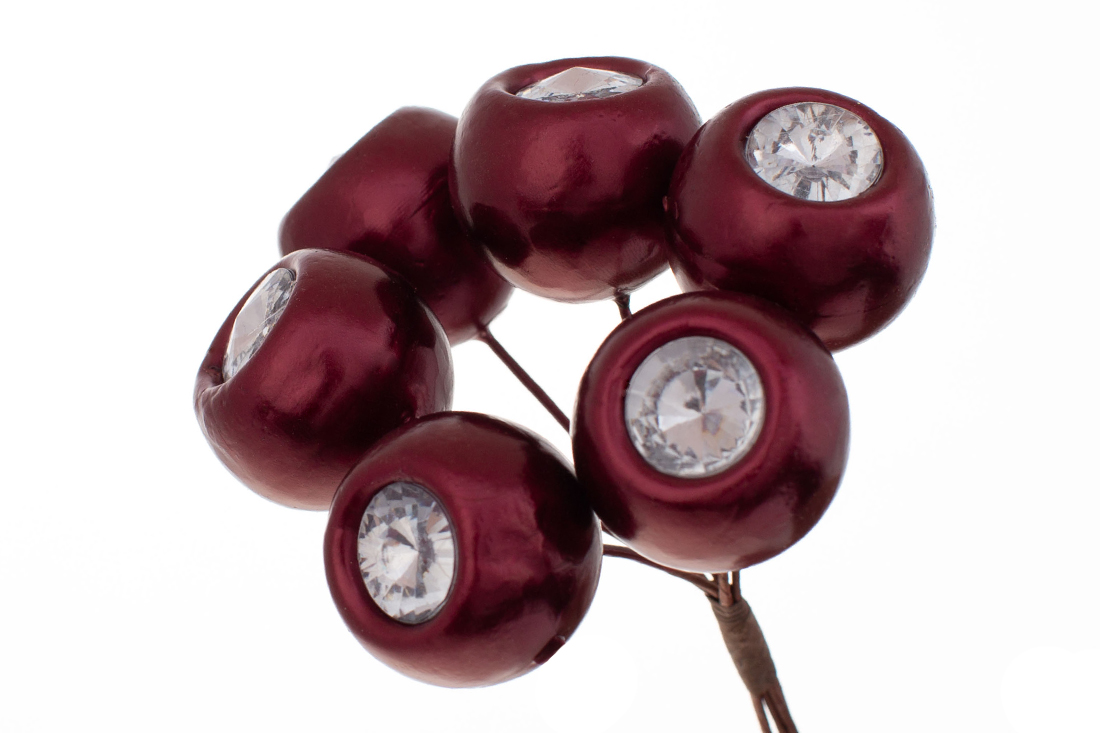 Пучок перламутрових ягід із кристалами 6шт, 12см, колір - бургундія