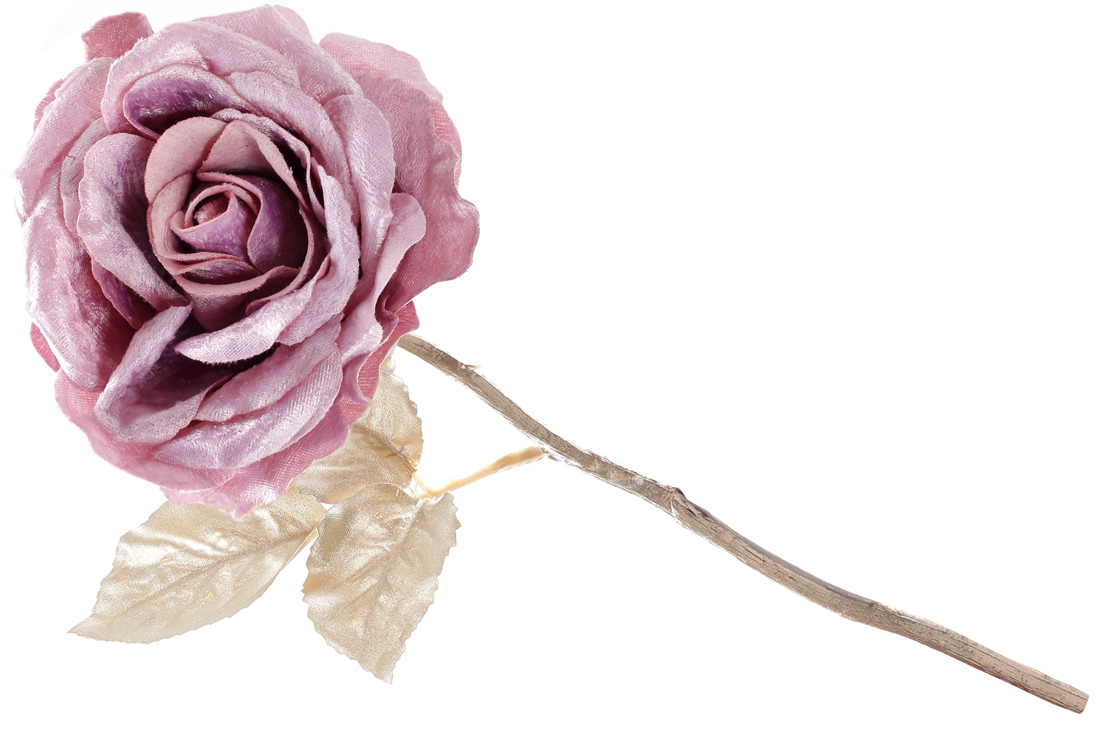 Троянда оксамитова на нозі 32см, колір - попелясто-рожевий з шампанським листям
