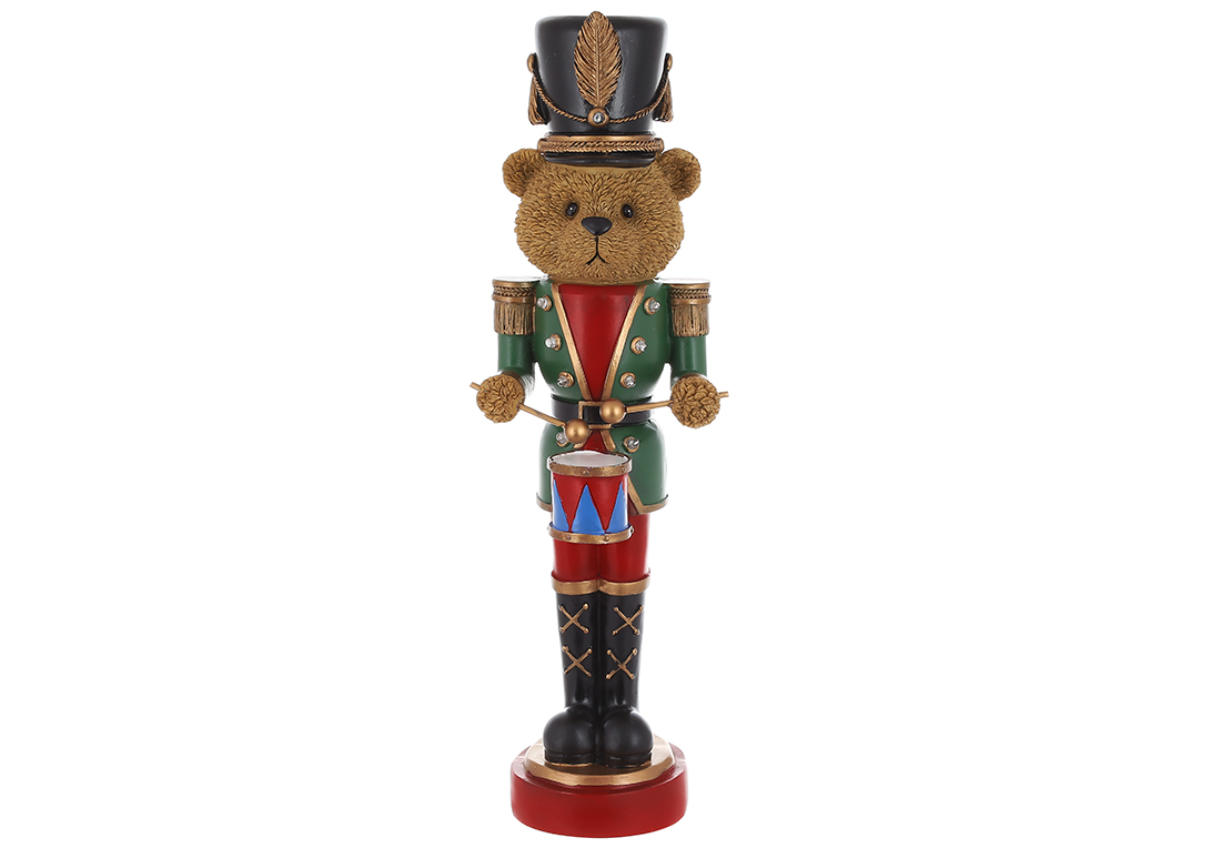 Статуетка Ведмедик-солдадик з LED 45см, колір - зелений з червоним