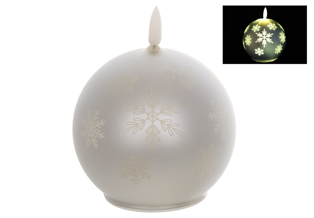 Світлодіодна скляна свічка з живим полум'ям, 10*8.5см, (3хААА не входять до комплекту), тепле біле світло, колір - срібло