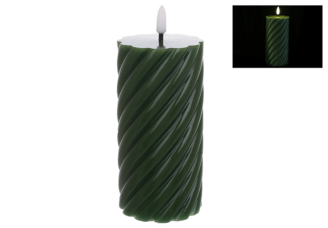 Світлодіодна воскова фігурна воскова свічка з живим полум'ям 7.5*15см (2хАА не входять до комплекту), тепле біле світло, колір - зелений