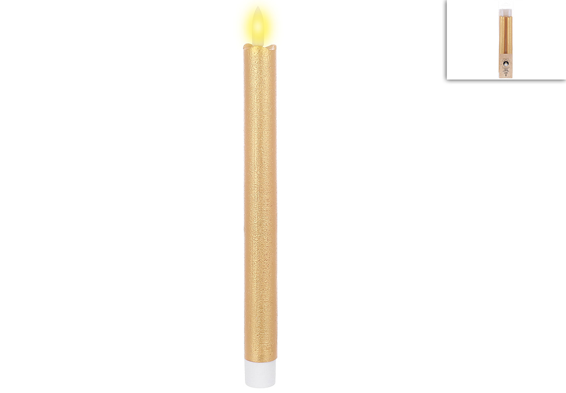 Світлодіодна воскова столова свічка - набір 2 шт 2.5*25см (2*ААА не входять до комплекту), тепле біле світло, колір - золото