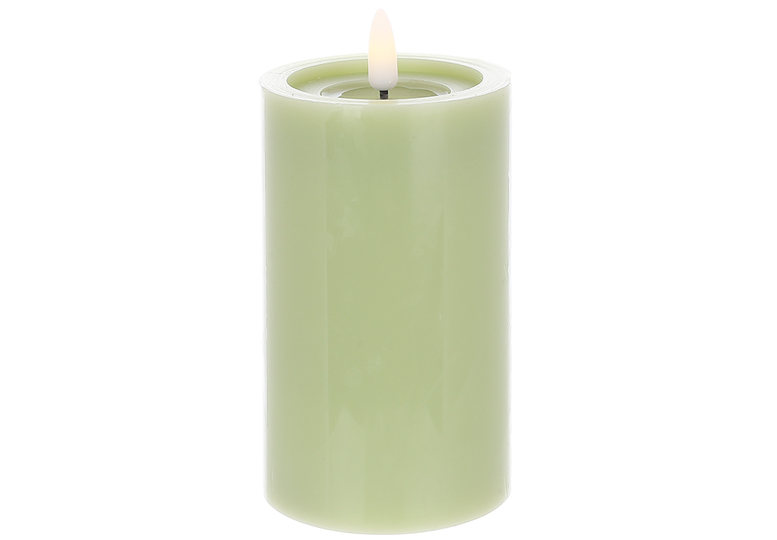 Світлодіодна воскова свічка з живим полум'ям 7.5*15см (2хАА не входять до комплекту), тепле біле світло, колір - трав'янисто-зелений