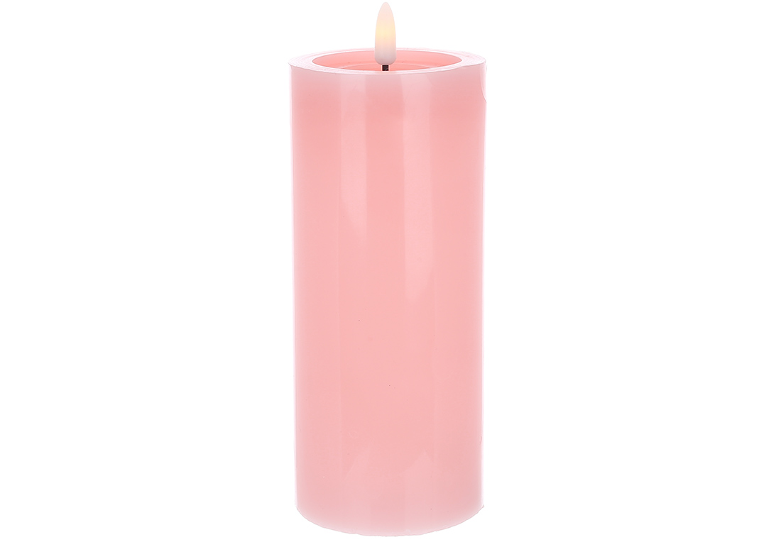 Світлодіодна воскова свічка з живим полум'ям 7.5*19.5см (2хАА не входять до комплекту), тепле біле світло, колір - рожевий