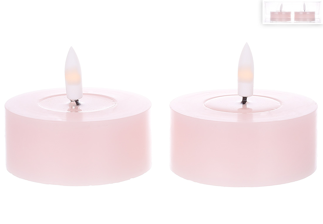Світлодіодна воскова свічка з живим полум'ям - набір 2 шт, 7*6см (2хАА не входять до комплекту), тепле біле світло, колір блідо-рожевий