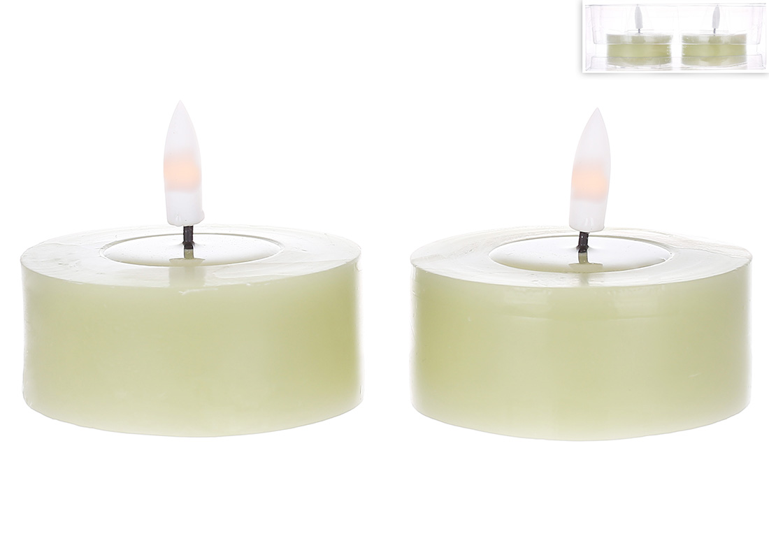 Світлодіодна воскова свічка з живим полум'ям - набір 2 шт, 7*6см (2хАА не входять до комплекту), тепле біле світло, колір - трав'яно-зелений