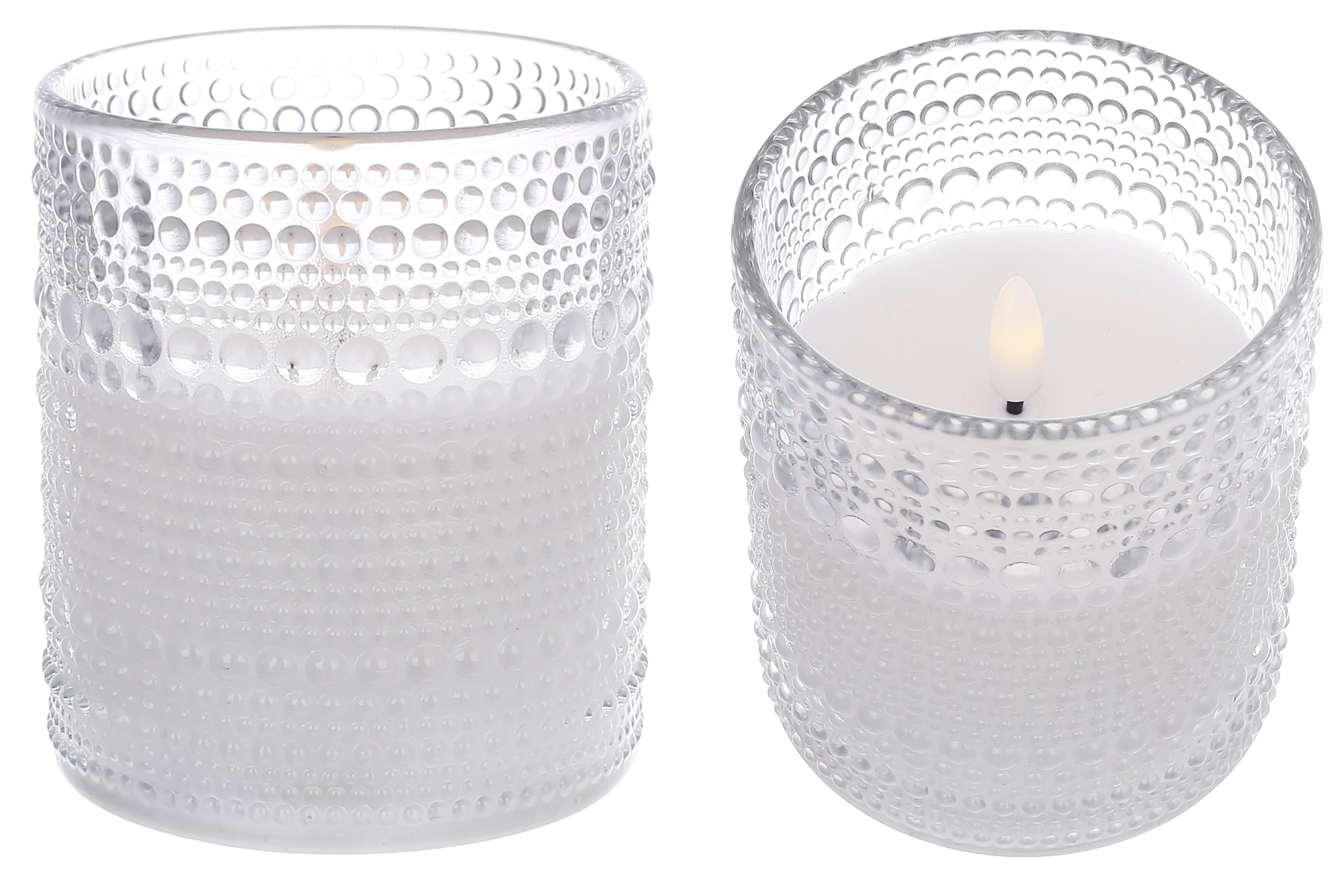Світлодіодна воскова свічка у скляній колбі Bauble 8.5*10см з жмвим полум'ям (2хАА не входять до комплекту), тепле біле світло, колір скла - димчастий