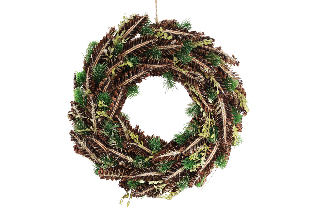 Вінок новорічний 40см з декором із шишок та зелених гілок