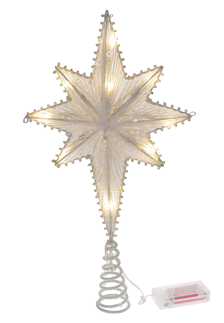 Верхівка на ялинку з підсвічуванням Зірка (10 LED лампочок від батарейок 2AA), 40см, колір - білий