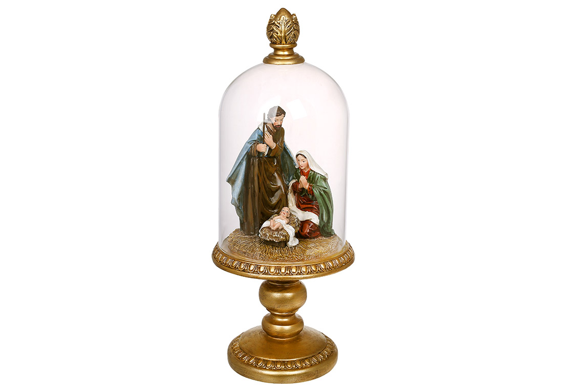 Вертеп Різдвяний під скляним ковпаком 35см, колір - золото