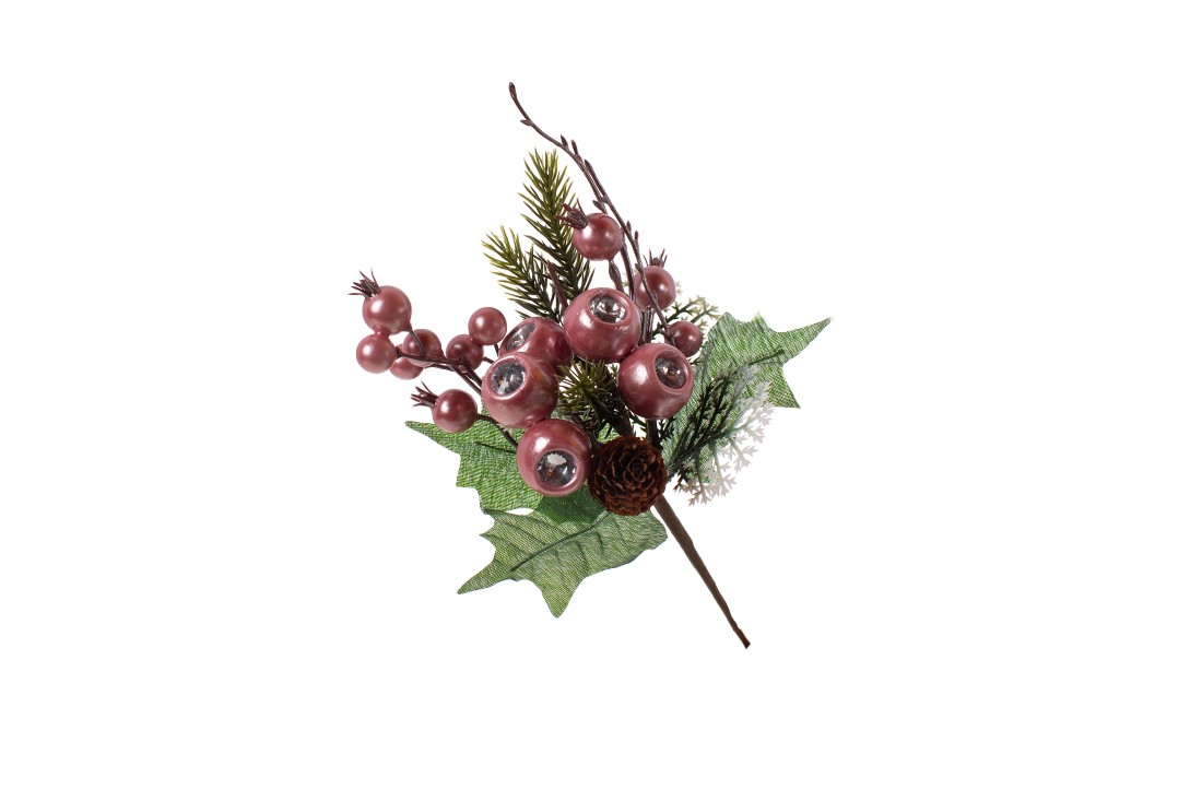 Гілка з хвої та перламутрових ягід з кристалом, колір: рожевий, 25см