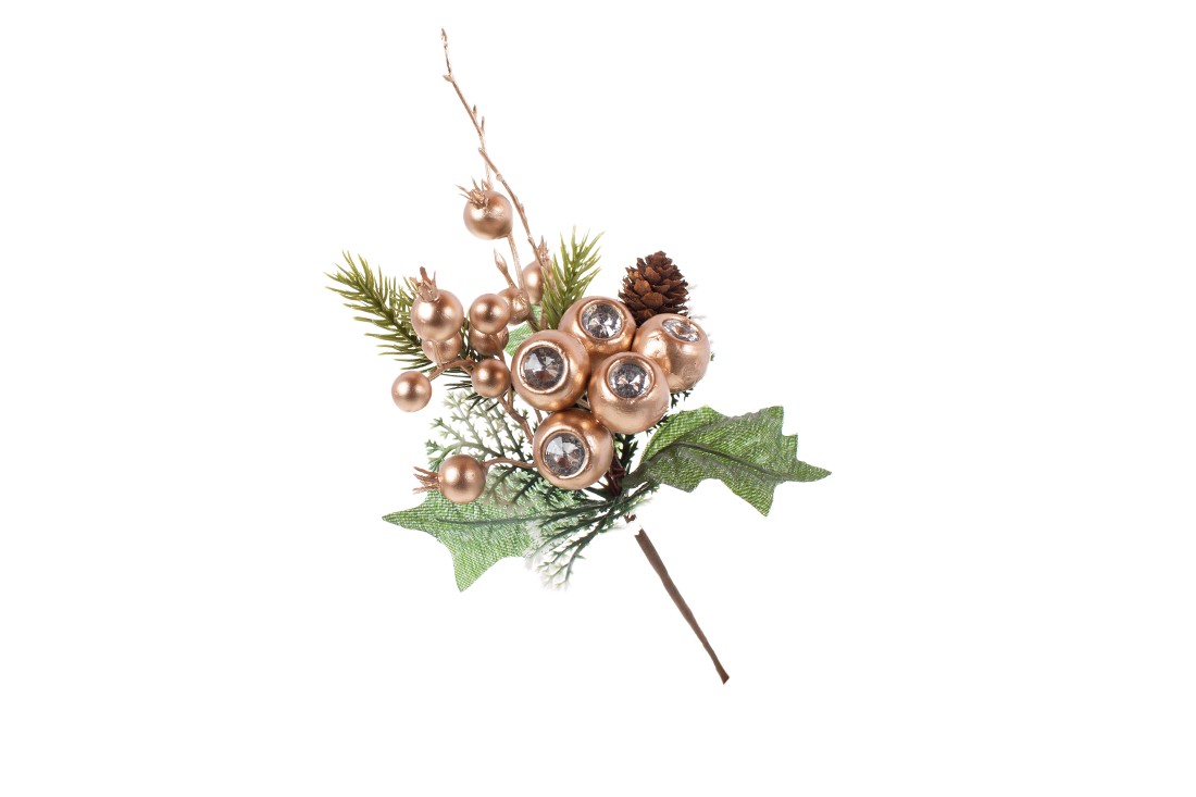 Гілка з хвої та перламутрових ягід з кристалом, колір: золото, 24см