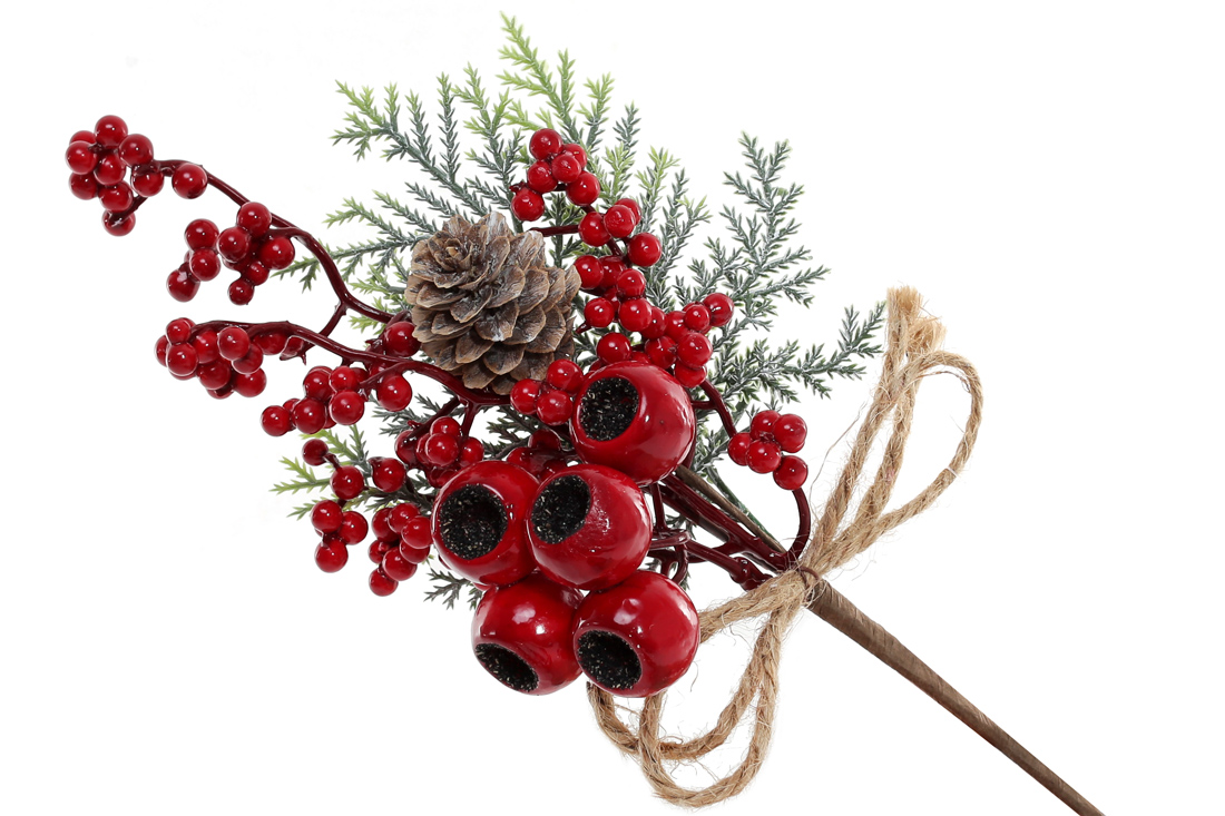 Гілка з червоних ягід, хвої з шишкою, 28см