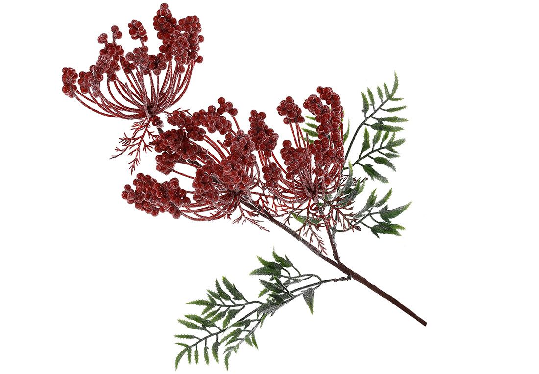 Гілка червоних ягід з листям 60см із сріблястою присипкою