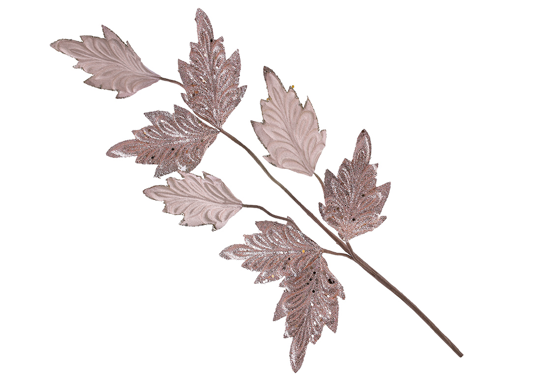 Гілка з оксамитовим листям 62см, колір - рожеве золото