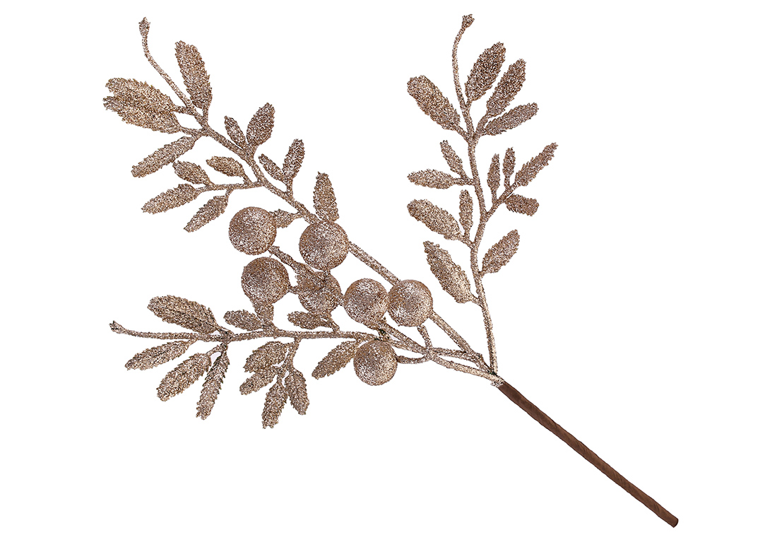 Гілка з листям та ягодами в гліттері 35см, колір - шампань