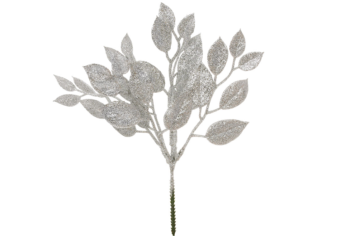 Гілка з листям у срібному гліттері 29см