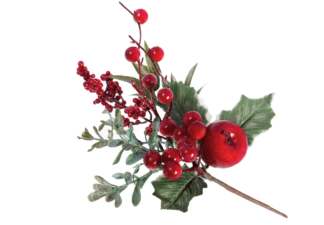 Гілка з ягодами, листям та яблуком, 27см, колір - класичний червоний із зеленим