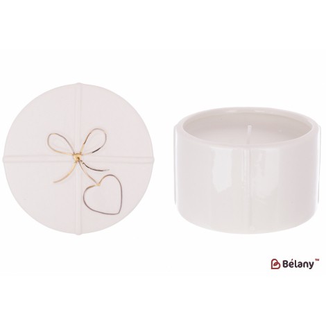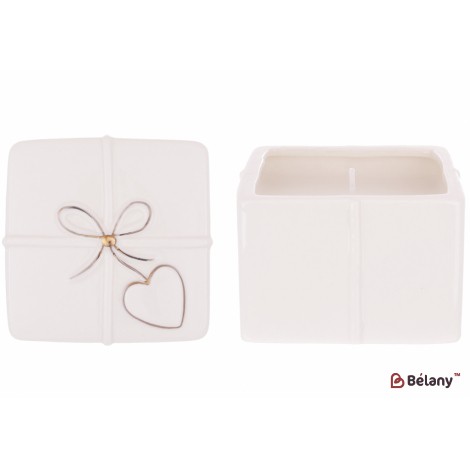 Фарфоровый подсвечник в форме подарка с золотым бантом, с восковой свечой 8*7.5см