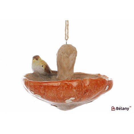 Подвесной декор - кормушка Гриб с птичкой, 14.5*14.5*12см