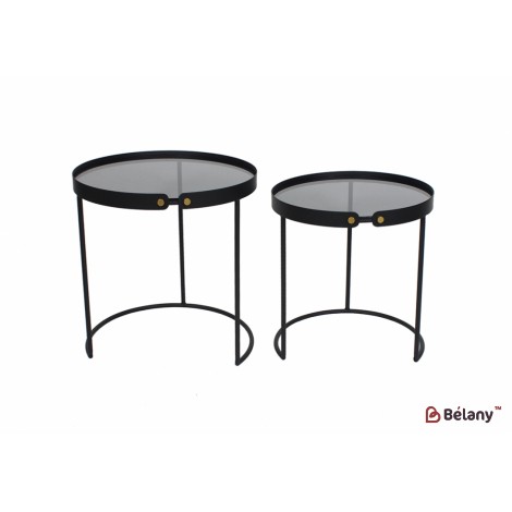 Набор журнальных металлических столиков (2шт) со стеклянными столешницами43*43*46,48.5*48.5*51см, цвет - черный