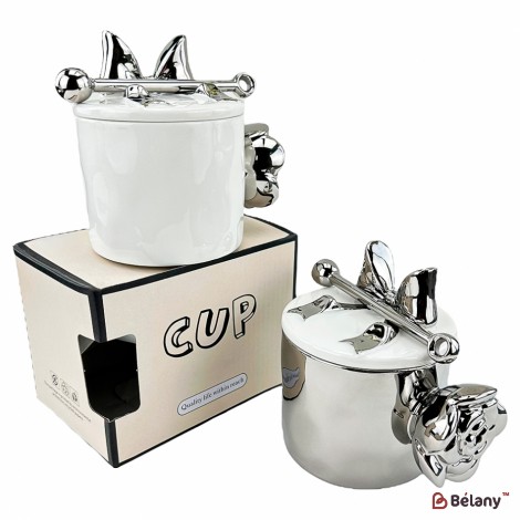 cana si farfurioara din ceramica "animale" crema