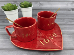 ceașcă Și farfurie din ceramică „deep gold heart” portocaliu