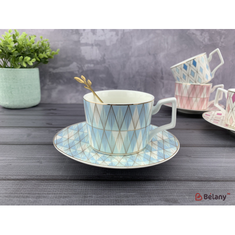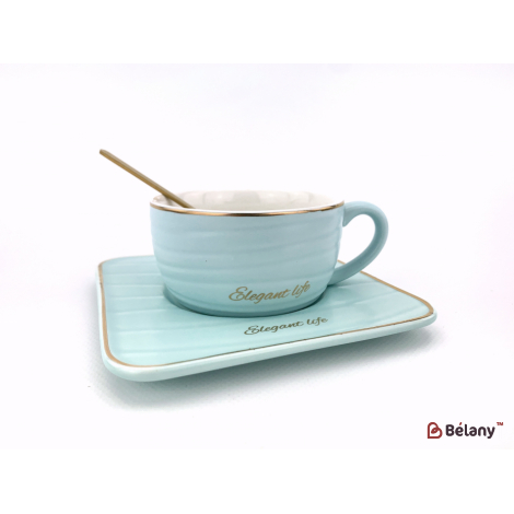 Керамическая чашка с блюдцем "waves" голубая