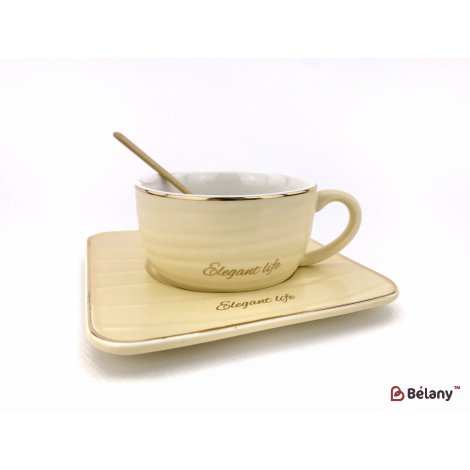 Керамическая чашка с блюдцем "waves" молочная