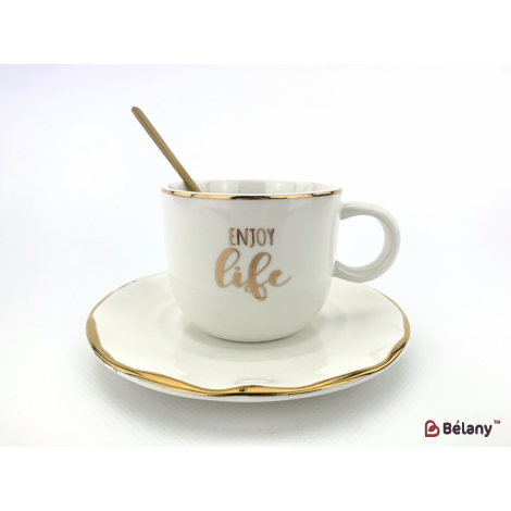 Керамическая чашка с блюдцем "figures" белая