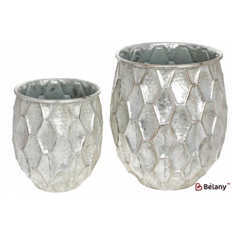 Набор (2шт) металлических кашпо 24см и 31.5см, цвет - серебро