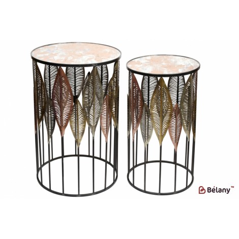 Набор (2 шт.) металлических столиков со стеклянной поверхностью, 67.5см и 72.5см.