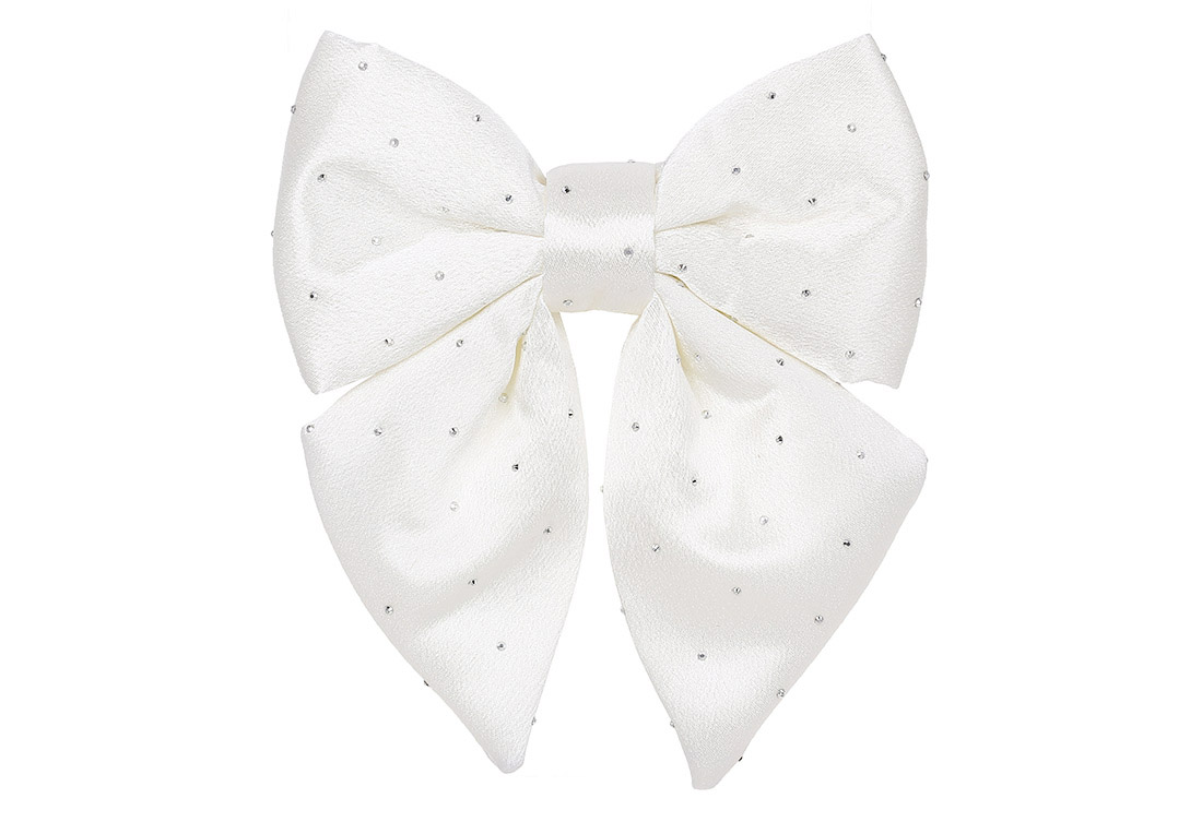 Бант декоративний зі стразами 13см, колір - білий атлас