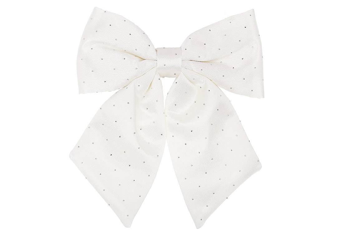 Бант декоративний зі стразами 22см, колір - білий атлас