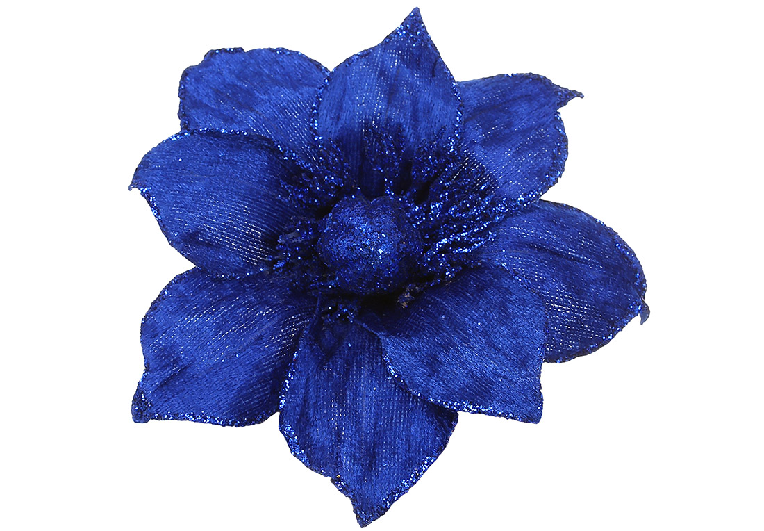 Оксамитова квітка Магнолія 15см, колір - синій з гліттером