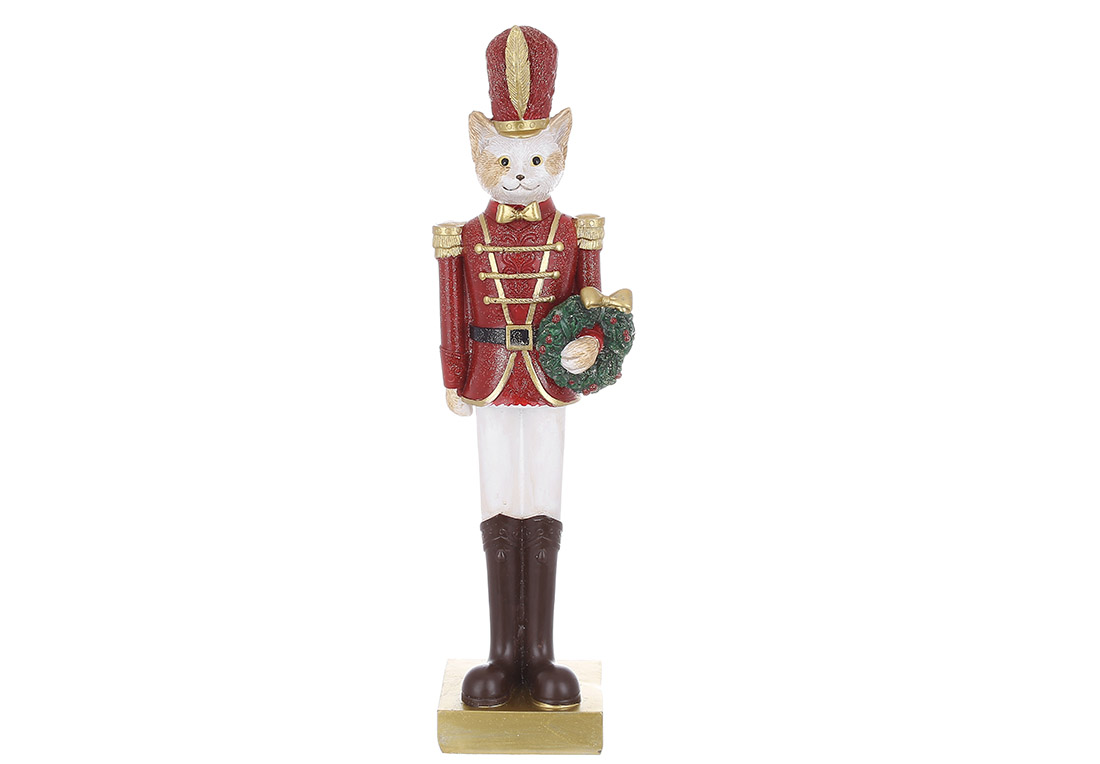 Декоративна фігура Кіт-страж із різдвяним вінком 10.5*8.5*36см, колір - червоний із зеленим