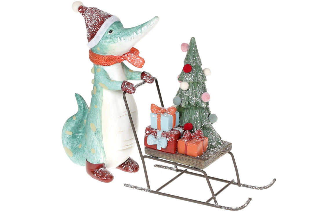 Декоративна фігурка Крокодил з ялинкою, 25.7см
