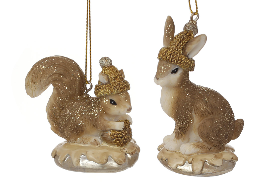 Декоративна фігурка на підвісі Білка та Заєць 7.5см, колір - коричневий із золотом, 2 дизайни